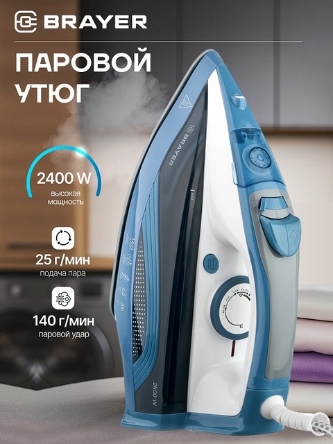 Утюг BRAYER 4002BR, 2400Вт, керамич, Пар 140 г/м антикапля, разбрыз, резер 360мл, самоотчис. /1/6/