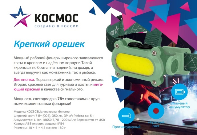 Navigator 14485 NPT-H19-ACCU налоб. 1COB LED, 1Вт, 4 режима, Li-pol 0,25 Ач /1/12/48/