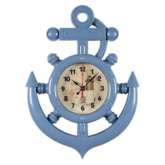 Часы настенные 3827-005 в форме якоря 27,5х38см корпус синий "Маяк" "Рубин" /1/10/